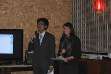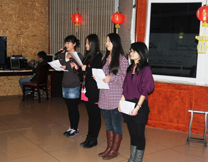晚会在当地时间18:30正式开始,德方院长徐艳博士和中方院长陈忠老师分别讲话,欢迎大家的到来,并且祝福大家新的一年健康快乐顺利。来参加本次联欢会的人员主要由三个部分构成。一是孔子学院的全体工作人员以及埃尔兰根大学汉学系的教职员工,二是在我们孔子学院学习汉语的各个班级的德国学员,另外还有13位由汉办选送到孔子学院来接受德语强化培训的汉语教师。这13位未来的汉语教师还为晚会准备了精彩的节目。他们不仅带来了优美的歌声、靓丽的舞姿、动情的诗朗诵,还给我们表演了中华文化的精髓-太极拳,让在场的德国学生们体验到了丰富多彩的中国文化。