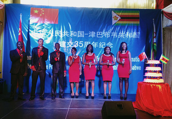 5月6日,中国与津巴布韦建交35周年纪念大会在哈拉雷国际会议中心举行,津巴布韦大学孔子学院中文合唱团受邀参加并献唱中津两国国歌。中国驻津巴布韦大使馆大使林琳、津巴布韦外交部部长穆本盖圭以及各国驻津外交使团、津巴布韦相关部委部长出席大会。中国非洲人民友好协会会长阿不来提·阿布都热西提一行代表中国参加此次纪念大会。