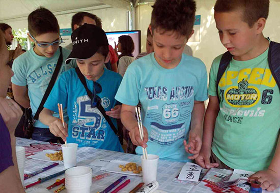 体验区的活动设计注重学生的参与和互动,成为整个科技节参与人数最多、最为火爆的区块之一。用筷子夹花生比赛,让学生们有机会学习如何使用筷子,“夹花生大赛”胜利者还可以得到意外惊喜——汉办赠送的学习中文的书签,让他们充分享受到中国筷子竞技的乐趣。