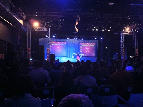 除夕之夜,UCLan学生社团所在的53剧场里,张灯结彩,喜气洋洋, Preston教授学习汉语、热爱中国文化的中外各界人士纷至沓来、欢聚一堂、共享盛会、其乐融融,可容纳500人的剧场座无虚席。普雷斯顿市政府、兰开夏中央大学校办也都派专员出席祝贺。晚会的宗旨和热烈气氛也许从当晚供应的年夜饭可见一斑:水饺、春卷、炸鸡翅、炸虾片—可谓中西合璧、赏心悦目,色香味俱全。参加演出的节目历经严格审核筛选,又经加班加点精心修练才得以呈现在观众面前。
