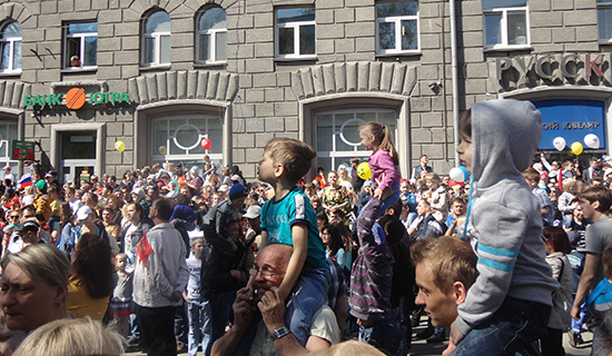 活动当天,市民们结伴而行,涌向列宁广场,红色大街上人山人海。孔院师生也一早赶到广场上,与市民们一同等待阅兵仪式的开始。