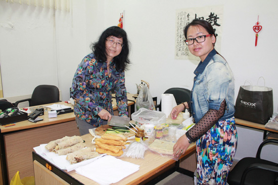 王保云教授、冯松老师现场制作煎饼果子