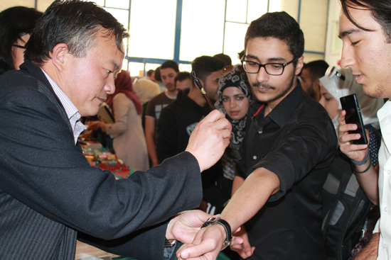 5月12日,约旦费城大学孔子学院举办“中国文化日”中国文化展示推介活动,约旦费城大学校长穆塔兹•A• 沙伊克•萨勒姆教授等领导亲临现场,看望孔院老师,并祝贺活动圆满成功。约1500人次参加了活动。