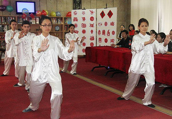丰富多彩的文化展览吸引了大批当地民众驻足观看,孔子学院师生展示了中国乐器、书法、国画、剪纸、太极、古筝、服装秀等多样的中国文化。