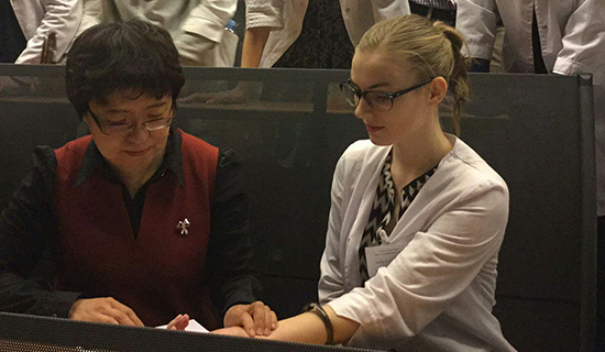 这是中医第一次走进立陶宛医院。当地医生对此兴趣浓厚,纷纷在讲座结束后请吴博士为他们诊脉,并就中西医的调理、治疗、结合展开热烈讨论。诊脉过程中,吴博士针对不同脉象诊断出不同体质,提出了如何利用中医方法进行调理。医生们纷纷表示希望以后能有机会深入学习,真正认识中国传统医疗并学会使用中医方法为病人治疗。