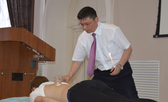 5月13日下午1点半,曾光博士题为“中医养生及常见病防治”的讲座在喀大孔子学院学术报告厅举行,报告厅内座无虚席,听众大部分为喀山市民和医生。曾光博士从中医理念到常见病的中西医治疗对比等多方面介绍了中医,让听众对中医有了一个全面而又具体的认识。随后,李铁浪教授题为“背俞功能带捏脊拔罐法对CFS患者临床疗效及血浆Trp的影响”在喀大医学院学术报告厅举行,讲座由医学院副院长法瑞多芙娜女士主持,容纳300余人的大厅听众济济一堂,多为医学院的师生和喀山市医学专业人士。李教授现场演示的捏脊拔罐法引起了听众极大地兴趣,纷纷上台体验。