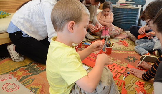 故事结束后,孔子学院的汉语教师为大家展示了“囍”字剪纸,并带领家长和孩子们亲手制作小剪纸作品。