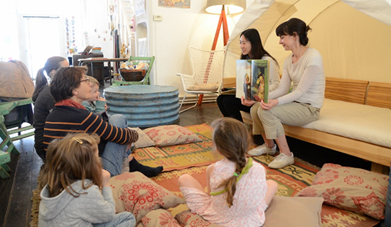 虽然是陌生的语言,但充满“音乐性”的中文对于孩子和家长们来说既有趣又动听。伴随着讲述者丰富的表情和肢体语言,孩子们时而瞪大双眼,时而展开笑颜,听得津津有味。故事中涉及到的中式传统婚礼习俗更是让家长和孩子们充满了好奇。