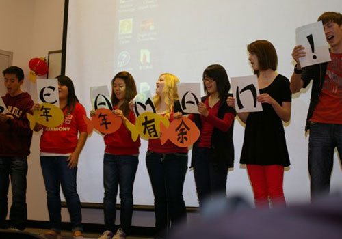2011年1月28日下午,亚利桑那州立大学孔子学院携手亚利桑那州立大学东亚系与亚利桑那州立大学旗舰领航项目,共同主办了2011春节联谊会。该联谊会在Durham Language & Literature大楼的阶梯教室举行。晚会节目形式多样,包括歌唱,小品,猜谜,舞蹈,乐器表演,以及诗朗诵。离开场还有半个小时,礼堂里已经几乎座无虚席。很多有表演任务的学生还在埋头苦背台词,这整场演出都是学生们利用少的可怜的课余时间自觉排练的。