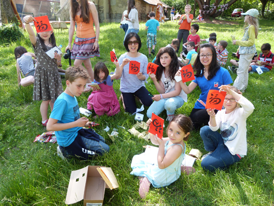 寻宝活动中,卢瓦尔孔子学院的教师向参加活动的50多位昂热儿童介绍了许多有关中国、山东省和烟台市的知识,孩子们学习兴趣高涨,他们积极回答老师提出的问题,赢得一张张寻宝提示卡,最终找到宝箱,孔院教师还以亲笔的“福”字作为奖品犒赏他们。孩子们在游戏中更多的了解中国文化,在快乐中增长知识,孔院的全体人员也在活动的参与中,增进了与其他友好城市代表的友谊,更在参与中获得一次相互学习的机会。