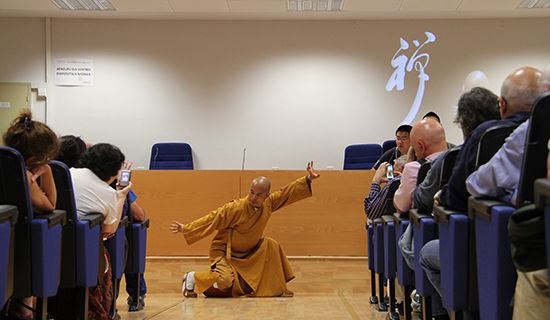 5月18日下午,少林寺释德扬大师到访西班牙瓦伦西亚大学孔子学院,带来了一场以《少林僧人的禅与武》为主题的讲座。孔院院长安文龙和西班牙中华武术学院院长朱启辉出席了讲座。