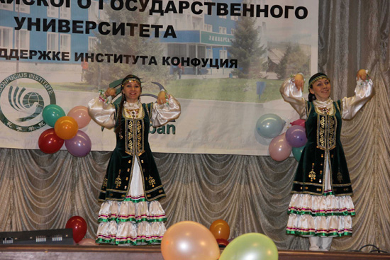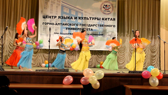 5月12日至5月15日,俄罗斯新西伯利亚国立大学孔子课堂——戈尔诺阿尔泰斯克国立大学教学点,举办了一年一度的汉语文化周活动。文化周期间,举行了面向全校征集汉语中心标志的比赛、庆祝汉语中心成立四周年而举办的汉语晚会、中国厨艺体验等丰富多彩的活动。孔子课堂的中方院长王琳和杜一鸽老师参加汉语文化周活动。