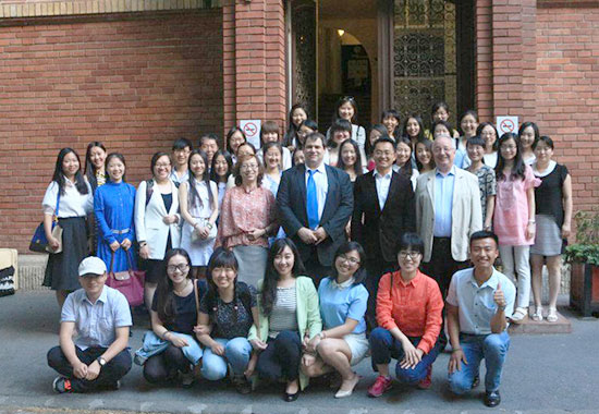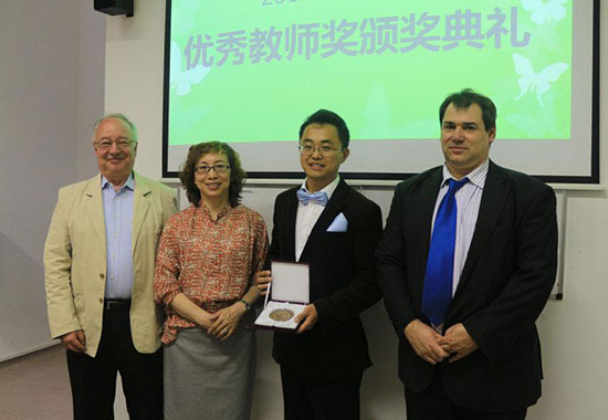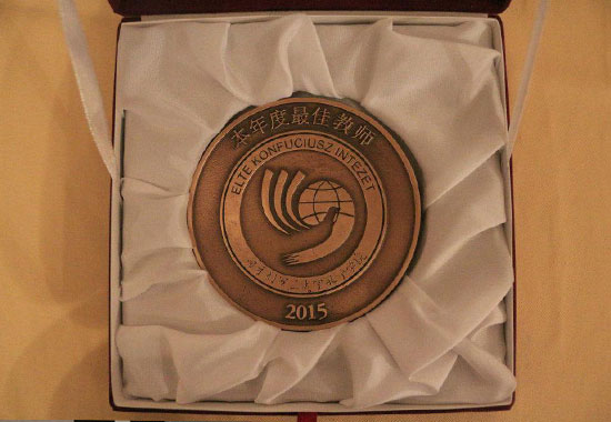 为了鼓励各位教师爱岗敬业再创佳绩,罗兰大学孔子学院首次设立了“优秀教师奖”奖励机制。孔猛老师凭借突出的教学能力和在学生中的极高人气获得了2014-2015学年“优秀教师奖”,由罗兰大学前校长、汉办荣誉理事胡岱茨亲自颁奖。他称赞罗兰大学孔子学院是世界上最优秀的孔子学院之一,并感谢中匈两位院长对孔院建设做出的卓越贡献,感谢所有汉语教师和志愿者为中匈两国文化交流与沟通做出的辛勤努力。