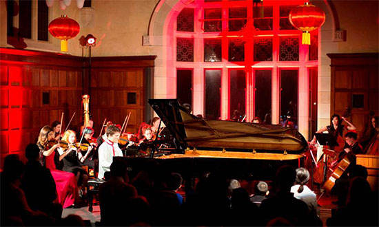 圣乔治学院音乐部主任、青年作曲家Michael Grebla发表致辞,对大家的到来表示热烈欢迎。年轻指挥家Raymond Yong、小提琴手Riley Skevington、大提琴手Krista Low等为观众们演奏了小提琴协奏曲《梁祝》;年轻钢琴手Aidan Boase与乐队演奏了著名钢琴协奏曲《黄河》的第二、三乐章,将音乐会推向高潮。