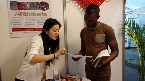 在为期三天的展览中,孔子学院总部/国家汉办提供的中国文化体验设备吸引了众多目光,触摸式大屏幕上不间断播放着中国文化资料片和蒙德拉内大学孔子学院的宣传视频,孔院展区前人头攒动,参观者络绎不绝。孔院教师热心地向咨询者派发宣传材料,介绍孔院的课程设置和奖学金项目,并指导他们体验中国文化。不少孔院学生自发带来自己的同学和朋友,用流利的汉语与老师交流,使围观者兴趣倍增。人们纷纷向展台工作人员咨询入学信息,表示要开始自己的汉语学习之旅。