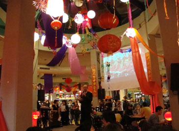 2011年2月4日,正月初二,在德国杜伊斯堡-埃森大学的主学生食堂里,高挂的红灯笼、五彩气球、喜气洋洋的“福”字、“春”字给整个食堂大厅带来了浓浓的中国年味,500余名中外学生、华人华侨和当地民众在这里欢聚一堂,共同庆祝中国的兔年春节。