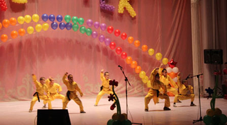 5月27日,吉尔吉斯斯坦奥什国立大学孔子学院武术班小弟子们应邀参加由奥什市少年宫举办的欢庆“六一儿童节”文艺演出活动,共一千余人前来观看。