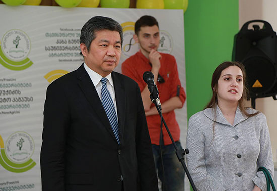 岳大使在致辞中表示,格语版《实用汉语课本》是格学生学习汉语、了解中国文化的有力工具,将为推动“汉语热”在格鲁吉亚更好更快地发展,发挥重要作用。他充分肯定了自由大学孔子学院为该书的编写和出版所付出的辛勤劳动。随后,岳大使简要介绍了近一时期中格关系的快速发展,特别是教育领域合作取得的显著成果。他勉励同学们努力学好汉语,深入了解中国语言和文化,努力为中格传统友谊的发展贡献力量。