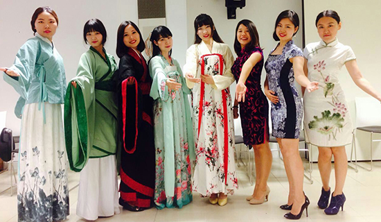 为了帮助观众更好地理解中国传统服饰的穿搭方式和穿着礼仪,服装展示环节分为汉服展示和旗袍展示两部分。汉服展示时,5名模特分别身着汉代曲裾、唐朝襦裙及明代短衣襦裙,配以古典发髻和妆容,并表演相应的行礼姿势;旗袍展示时,从传统样式到现代款式的11套旗袍夺人眼球,从丝绸面料到纯棉甚至麻纱面料,从华贵的宫廷祥云图腾到清丽的泼墨山水图样,每一件旗袍都在模特的演绎下显得魅力十足。