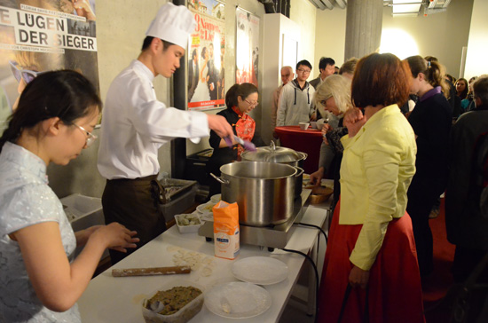 开幕仪式上,美食系列片《舌尖上的中国》作为首播影片展现给观众。50分钟的电影结束后,学院结合影片的内容进行了中华美食展示与品尝活动,观众不仅可以现场学习饺子的制作过程,还有机会亲自品尝饺子、烧麦、月饼等传统美食。