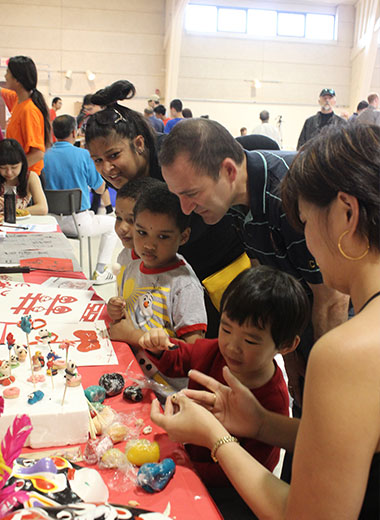 此外,孔子学院精心设置了中国文化展台及互动文化体验活动,外国友人在展台前排队等候,动手捏面人,学剪纸,写汉字,体验中国传统文化的魅力。