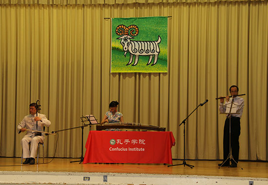 孔子学院艺术团推出的民乐小合奏《彩云追月》、古筝独奏《战台风》、民族舞蹈《七月火把节》三个节目,以热烈欢快的节奏和高水准的艺术表现,掀起一阵阵浓烈的中国风。