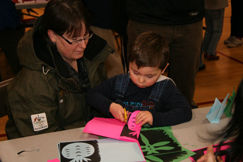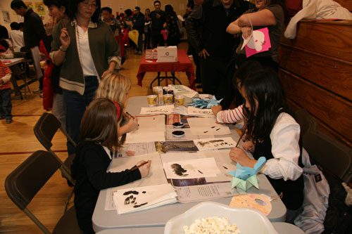 偌大的体育馆内装饰一新,洋溢着中国的新春气息——灯笼、春联、福字、剪纸、鞭炮挂饰等等,到处都是中国元素。针对孩子们的特点,课堂的老师们颇有创意地设计了一个个中华文化展台,如十二生肖面具、中国结、书法、国画、折纸、剪纸、中国象棋、珠算等等,既向孩子们展示中国才艺,又给他们提供了学习、实践的机会。