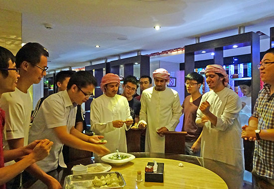 5月26日,按照阿联酋王储基金办公室(Crown Prince Court)教学活动安排,由扎耶德大学孔子学院承办的青年大使汉语班(Youth Ambassador Program)学员赴阿布扎比的北京楼中国餐厅,进行了一次中国食文化的体验活动,中国留学生和大使班师生共30余人参加此次活动。