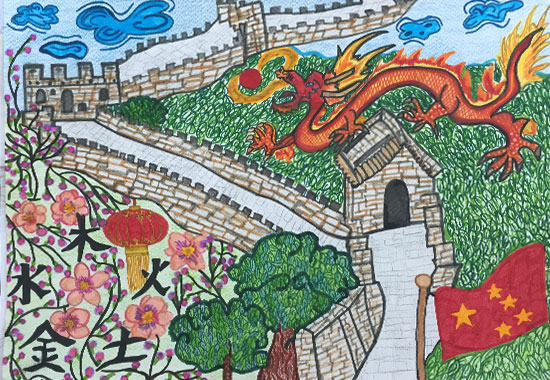 此次参赛作品充满了中国元素,如长城、熊猫、中国龙等,有的征文提到中国丝绸之路,体现出孩子们天真烂漫的童趣及无穷无尽的想象力。