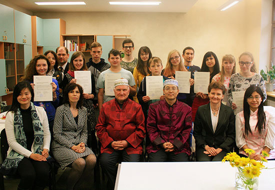 讲座结束后,两位院长分别为每一位汉语班的学生颁发学习证书并给部分学员颁发HSK等级证书,祝贺大家取得的成绩。