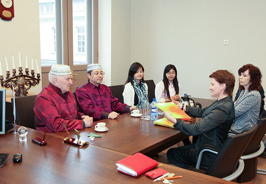 雷泽克内大学副校长安格莉卡与孔子学院一行、雷泽克内大学继续教育中心主任卡琳娜和志愿者教师王树蕙进行会谈。安格莉卡女士对拉脱维亚大学孔子学院与雷泽克内大学的合作表示感谢,合作两年以来,雷泽克内大学汉语教学点不断发展进步,设施配套日趋完整,截止目前已有100人左右次先后在这里学过汉语和中国文化。随后,安格莉卡女士以自己亲身参与的中国春节系列文化活动为例,分享了自己在活动中感受到的喜悦。她说,她打算学习汉语,以便更好的和汉语教师交流。