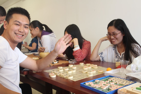 活动现场,象棋、围棋、太极拳、书法、拼图、乒乓球、跳绳、歌舞等精彩的活动吸引了孩子们的注意力。兴高采烈的孩子们和他们的家长一起参与到各项活动。孔院志愿者教师领舞的“小苹果”动感十足,孩子们又唱又跳,不亦乐乎。孔院教师表演的二十四式太极拳更是吸引了观众的目光,许多现场观众摩拳擦掌,一招一式学的有模有样。两国儿童合唱“小二郎”,稚气的嗓音、欢快的表情令到场观众忍俊不禁。蔡宇遥小朋友朗诵的诗歌《我喜欢出发》,声情并茂,字正腔圆,博得了观众的热烈掌声。