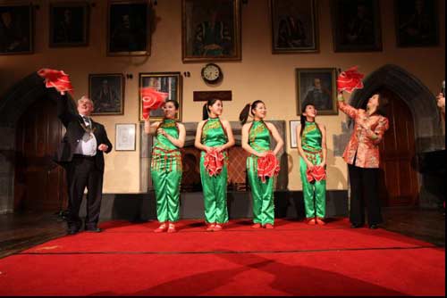 2011年2月9日晚, 英国伦敦南岸大学中医孔子学院、爱尔兰科克大学孔子学院与黑龙江中医药大学联合举办的"2011喜迎新春"晚会在科克大学Aula Maxima礼堂隆重举行。
