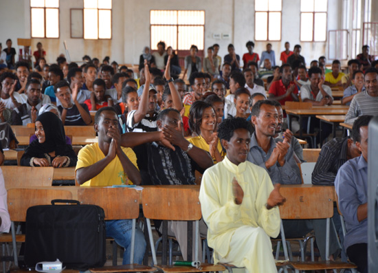 5月20日下午,厄立特里亚高教委孔子学院中方院长王小华博士带领孔子学院全体教师及文艺表演队前往厄特哈勒哈勒商学院演出,共同庆祝厄立特里亚独立二十四周年。