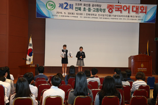 5月30日上午,韩国华山中学孔子课堂和“新全北新闻”社合作,在全北大学进修堂共同举办了“第二届汉语桥全北中小学生汉语比赛”。来自全罗北道的87名选手进行了紧张激烈的角逐。