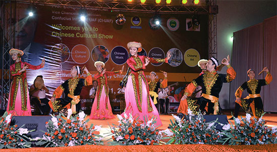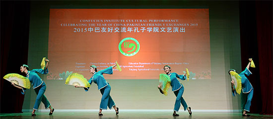 据悉,为积极响应习近平主席“一带一路,打造丝绸之路经济带”的号召,传播中华文化,推动国际汉语教育,在国家汉办、新疆维吾尔自治区教育厅、中国驻巴基斯坦使领馆的大力支持下,费萨拉巴德农业大学孔子学院组织新疆农业大学、新疆艺术学院师生联合演出代表团赴巴基斯坦费萨拉巴德市、拉合尔市、伊斯兰堡举办四场“2015中巴友好交流年孔子学院文艺演出”。
