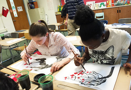 6月5日,美国阿尔弗莱德大学孔子学院教学点宾汉顿西城中学举办中国画课堂文化体验活动。