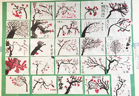 活动结束后,师生一起布展,在教室外的走廊上专门开辟了一处中国画作展,对中国画进行了简单介绍并展出学生作品,吸引了众多老师和其他年级学生的驻足观赏并受到一致好评。“这些画太漂亮了!学生们不仅学习了汉语,还了解和体验了中国的传统文化,太棒了!”副校长Dorian Zahka女士特地去观看了学生作品并赞不绝口。