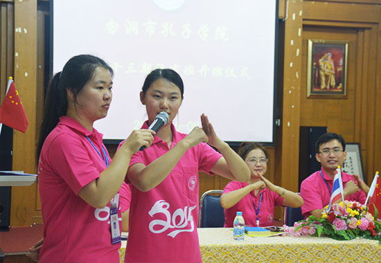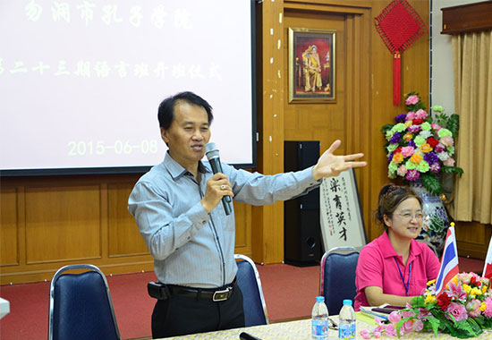 6月8日晚,泰国勿洞市孔子学院第二十三期语言班正式开班,勿洞市市长容志江、孔子学院院长刘丽英、孔院教师及各班学员约90余人出席开班仪式。