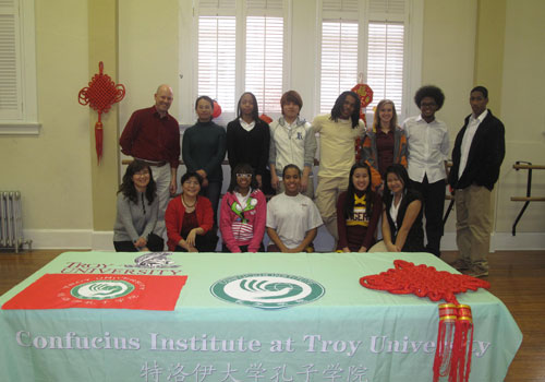2011年2月7日,特洛伊大学孔子学院应邀到阿拉巴马州府蒙哥马利市的LAMP (The Loveless Academic Magnet Program)高中以春节为主题举行了一次文化体验活动,庆兔年,迎新春活动在LAMP高中礼堂隆重举行,吸引了很多学生和家长,他们兴高采烈地走进礼堂,与特洛伊孔子学院的成员互动,福字、灯笼、春联、纸伞将礼堂渲染的喜庆祥和,礼堂设置了五个展台,分别是书法、剪纸、中国食品、春节图片和筷子游戏,学生们可以按兴趣选择活动板块,每个活动都有特洛伊孔子学院的人员专门负责组织和讲解。学生们在负责人员的指导下写汉字,剪喜字,尝试使用中国筷子,品尝中国食品,了解春节习俗,这些体验活动让中国春节鲜活地呈现在他们眼前。每项活动之后都提供奖品鼓励学生,包括糖果、小玩具、汉字扑克、汉字卡等。
