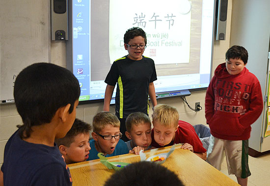三年级学生李欧说:“我喜欢划船,也见过很多不同的船,但是我觉得龙舟是最酷的船,我要把我做的龙舟带回家给爸爸妈妈看。而且以后我想去中国划一划真的龙舟,还要参加龙舟比赛。”