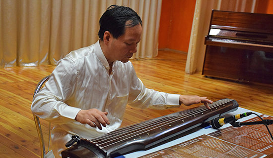 王云高举木偶美人,长袖飘飘演绎中国古代名曲《春江花月夜》,音乐陡转,川剧声起,她手中的木偶伴随乐声自由变换面部颜色,上演了“川剧变脸”的绝活儿,引来观众阵阵喝彩。马维衡用古琴演奏中国传统名曲《高山流水》,呈现出中国古琴“至静之极”、“松沉旷远”的特点,听众们陶醉其中。张方林现场表演剪纸艺术,短短几分钟,栩栩如生的蝴蝶、惟妙惟肖的百鸟争春图跃然纸上,此外,他还邀请观众,当场表演肖像剪纸,精湛的技艺令观众感叹:“太像了!”
