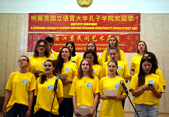6月5日,白俄罗斯明斯克国立语言大学孔子学院举行2014-2015学年结业典礼,明斯克国立语言大学、语大附属语言学院及多所中学校领导、当地汉语教师、孔院学生和学生家长近200人参加该活动。