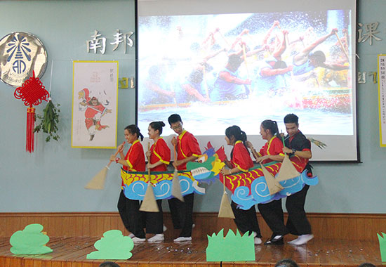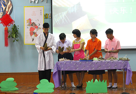 本次活动包括“端午文化知多少?”、屈原小话剧、学生自制香包展示和包粽子品棕香四个环节。
