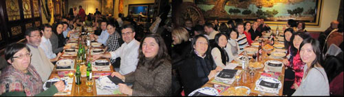 晚上九点钟,瓦伦西亚的美珍饭店挤满了庆祝中国春节的西班牙人。除了年夜饭,也少不了表演和抽奖等节目。人们一边吃饺子,一边看表演,幸运的人还会获赠一套中国图书作为新年礼物。此外,所有到场的人都收到了孔子学院精心准备的兔年挂历和配图日历,以及2011年新春第一期(总第四期)中西文版的《孔子学院》杂志。该杂志由瓦伦西亚大学孔子学院协助中国国家汉办编辑,面向西班牙语国家和地区发行,在春节到来之际,特地设专题为读者解读了中国春节、饺子、十二生肖等传统习俗和它们的文化含义。