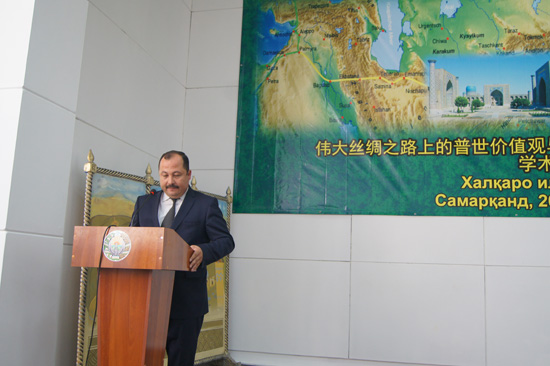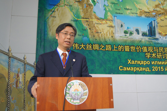 乌兹别克斯坦撒马尔罕国立外国语学院院长拉西莫夫在出席研讨会时说,“在两千多年间,伟大的丝绸之路从东方的中国,经过中亚,延伸到地中海地区。它不仅仅是一条商贸线路,还是在政治,经济和文化领域中互动影响的多层面通道。与此同时,应当首先把它看做是一条东西方文明精神成就的传播之路。伟大的丝绸之路横跨数十个国家,促进了沿途各族人民的文化,语言和民族价值观的沟通,进而参与塑造了将各国人民融为一个人类整体的普世价值观。在二十一世纪,伟大的丝绸之路沿途各国互相影响,在政治,经济,科技和文化领域的合作进入了一个崭新的高水平阶段。我们共同把丝绸之路建设好,重振丝绸之路人文交流,共同造福沿线各国人民,让这条古老而文明的通道更加灿烂”。