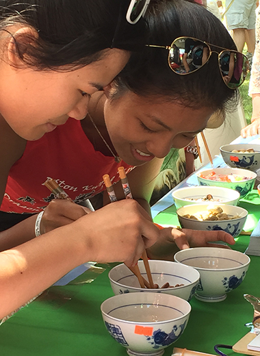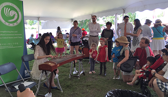 6月14日,波士顿查尔斯河上的龙舟竞赛如火如荼,河边的文化展示也热闹非凡,麻州大学波士顿孔子学院的展位格外引人注目。