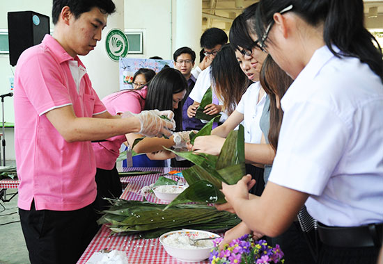 本次活动共设有中国风巡演团表演、包粽子、做香囊、编五彩绳等环节。马院长在致辞中说,端午节是中国最重要的传统佳节之一,清迈大学孔子学院希望让更多外国友人了解中国端午节的习俗,爱上中国传统文化。