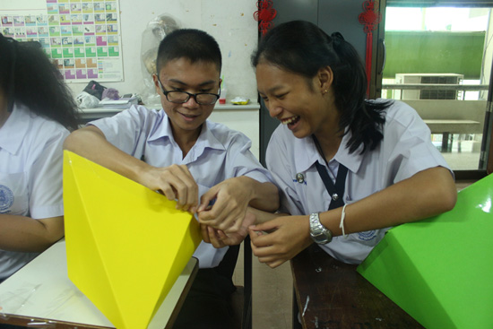 泰国学生兴致勃勃地动手制作彩粽