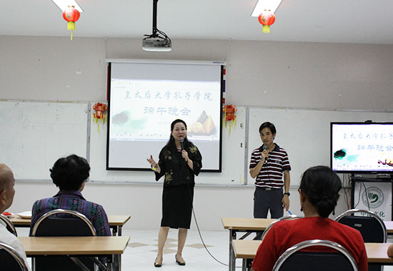 6月19日,泰国皇太后大学孔子学院举办端午节晚会,皇太后大学师生及清莱地区中国留学生70余人观看晚会。